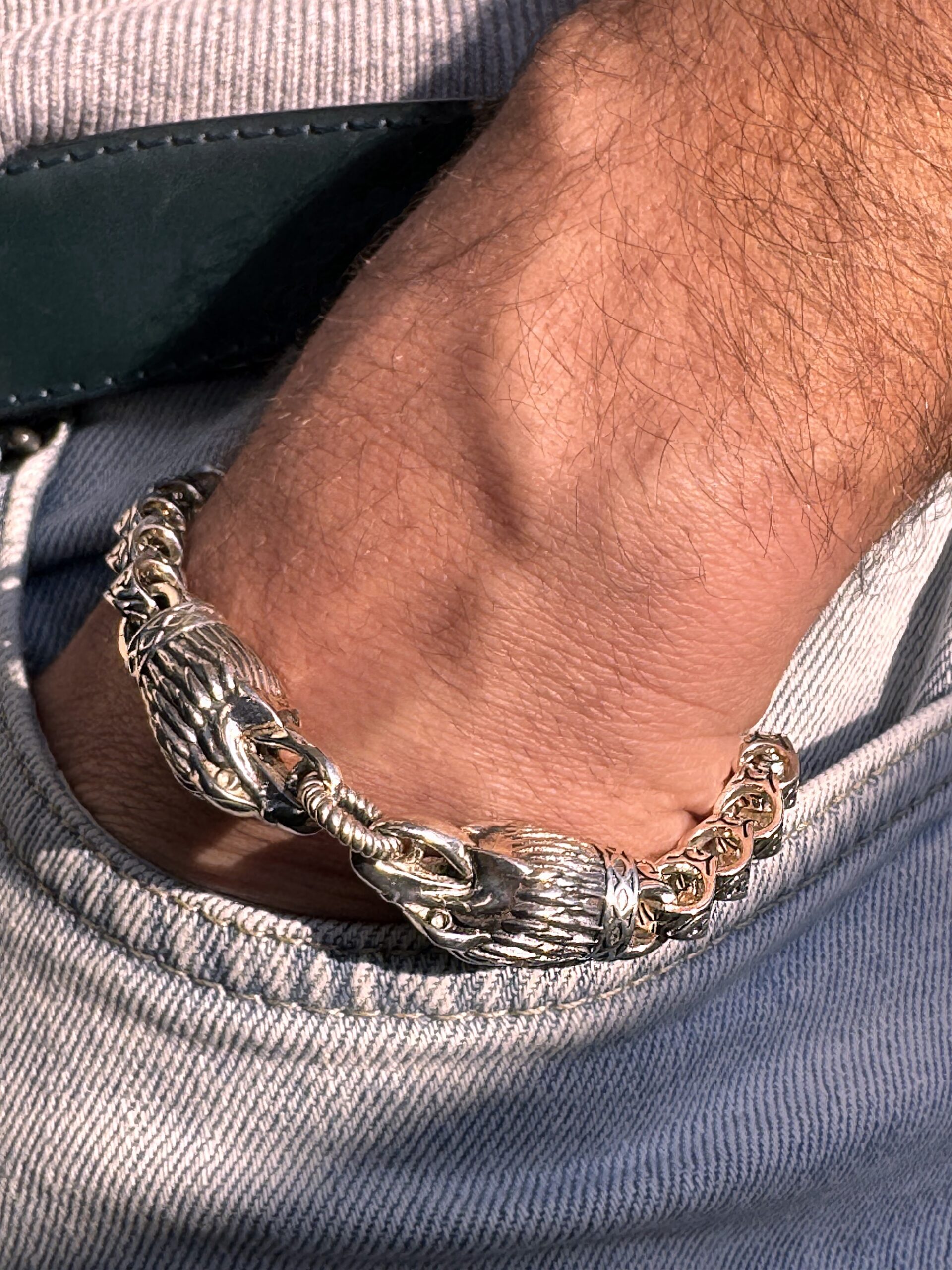 The bracelet captures the elegance of the intertwined twin eagles, transforming this powerful motif into jewelry. Crafted in silver, Tospitis bridges ancient heritage with modern design, making it a bold and meaningful accessory.